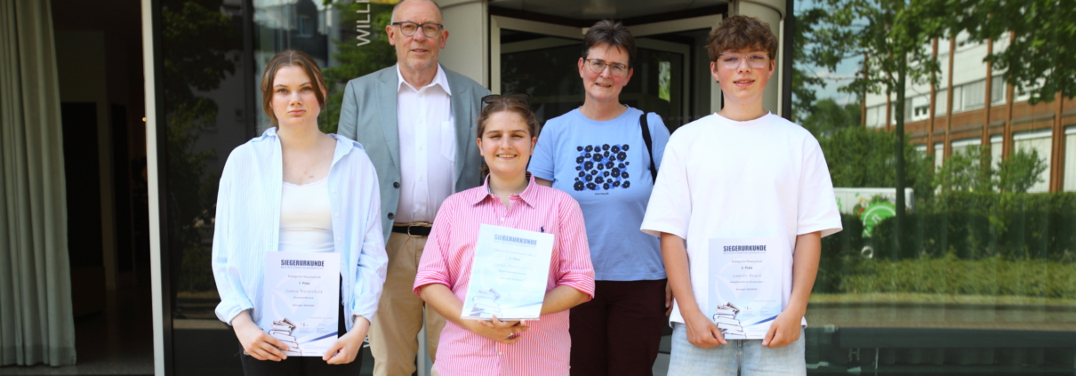 Lauritz Krack aus der 9a2 wurde am 2.7.2025 zur Siegerehrung „Bester Praktikumsbericht 2024/2025“ von SchuleWirtschaft eingeladen. Mit seinem Praktikumsordner belegte er den zweiten Platz für die Realschule im Hochtaunuskreis. Wir haben uns sehr darüber gefreut, dass ein Mitglied unserer Schule ausgezeichnet wurde.