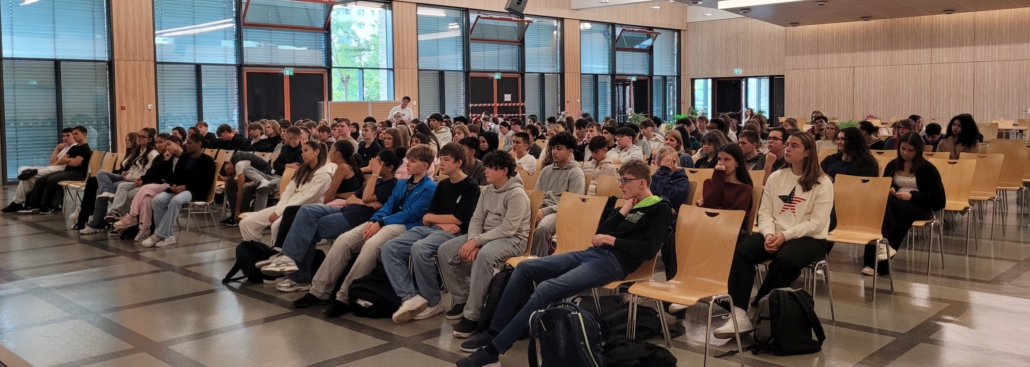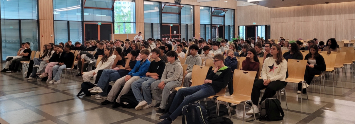 Die Klassen der Jahrgänge 9. Hauptschule und 10. Realschule und Gymnasium verfolgten gespannt die Aufführung des Leipziger Schultheaters.