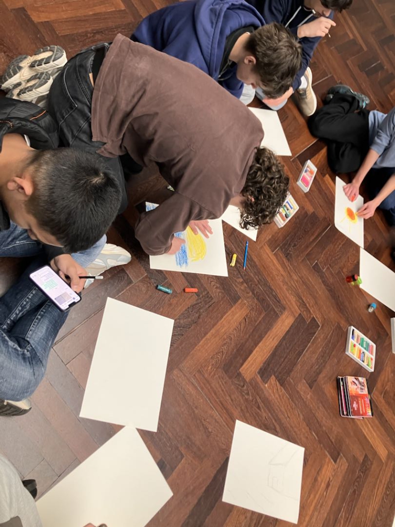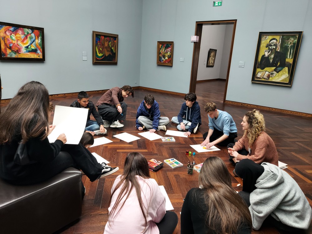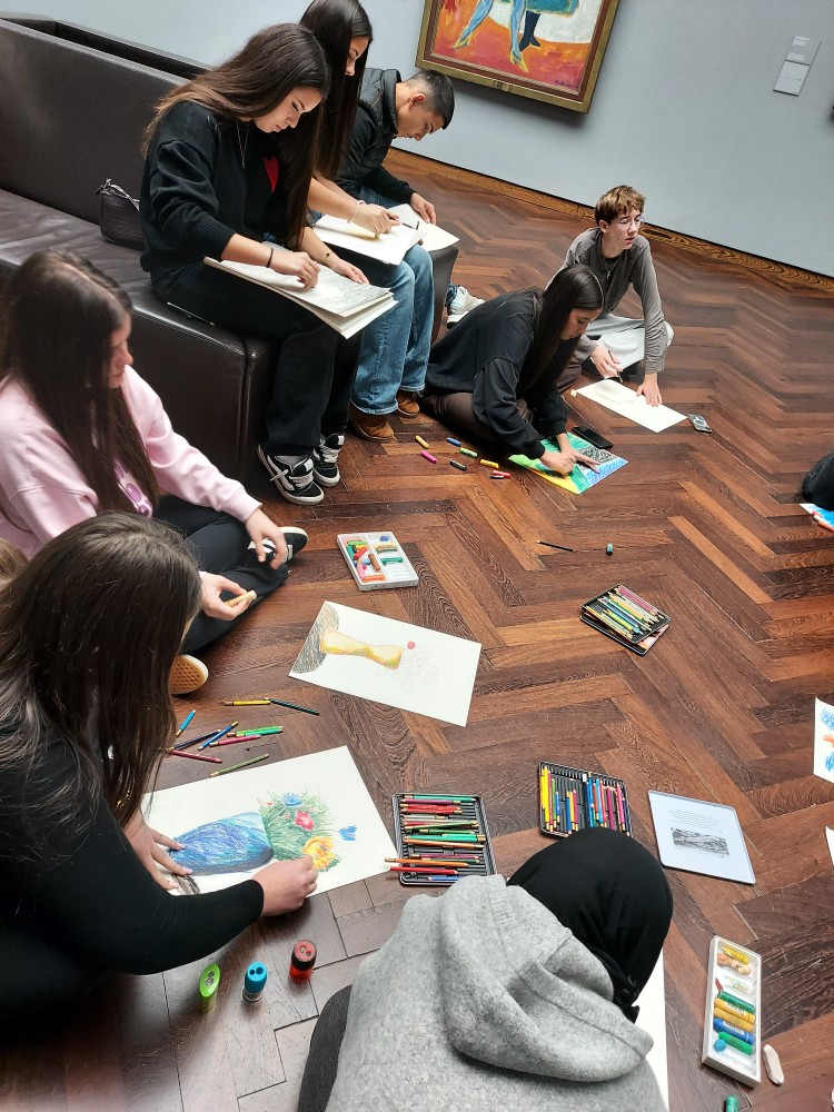 Nach der Führung wurde den Schülerinnen und Schülern ein praktischer Teil angeboten, in dem sie ihre eigenen kreativen Fähigkeiten entfalten konnten. Ausgestattet mit Papier und Stiften setzten sie sich intensiv mit dem Thema „Licht“ auseinander und gestalteten eigene Bilder. Dieses praktische Arbeiten fand in einer entspannten Atmosphäre direkt neben den berühmten Kunstwerken statt, was den Lernprozess zusätzlich bereicherte.