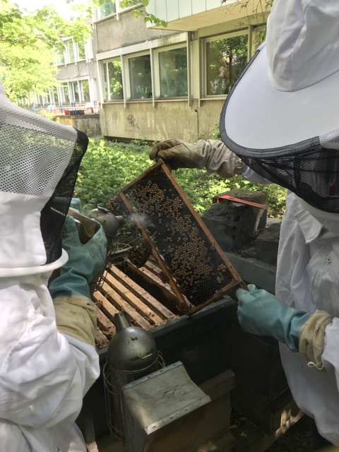 Von der Pflege der Bienen über das Verständnis ihrer Lebensweise bis hin zur Honigernte begleiten die Teilnehmenden alle Arbeitsschritte. Der selbst gewonnene Honig wird anschließend an der Schule verkauft – ein sichtbares Ergebnis der gemeinsamen Arbeit, wie auch das aktuelle Foto vom Honigverkauf zeigt.