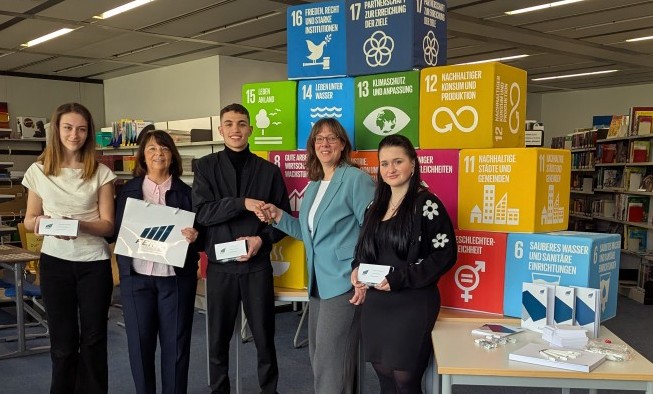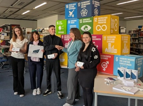 Unsere Schulsprecherinnen und -sprecher und Schulleitung Frau Braun-Wredenhagen bedanken sich herzlich. So kann Nachhaltigkeit funktionieren und unsere Schule bereichern.